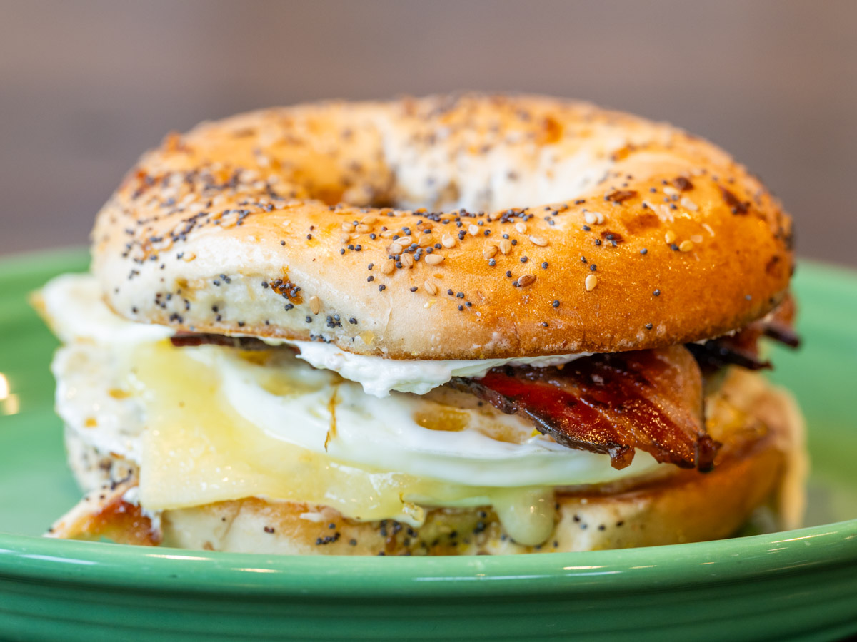 One local fried egg, American cheese, and choice of bacon, sausage, or Canadian bacon on a plain bagel, English muffin, or ciabatta.